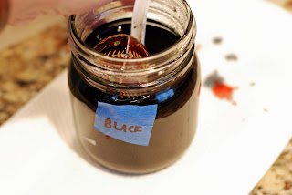 Make up your dyes as per the packet instructions. I make mine up in pint sized canning jars. I put the lids on whenever they are not in use as the dyes tend to evaporate quickly.
